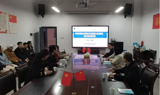 随后,廖柏林进行了两场专题报告。首先廖柏林以“神经网络求解的多智能体低通信、实时协同控制”为主题,深入探讨了多智能体系统在低通信环境下的实时协同控制问题,并结合神经网络技术提出了创新性的求解方法。报告内容涵盖理论前沿与实际应用,引起了现场参会人员的浓厚兴趣和热烈讨论。