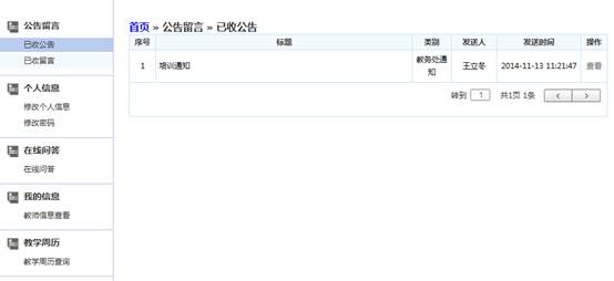 【公告留言】|【已收公告】查看已收到的公告信息,如图1-1