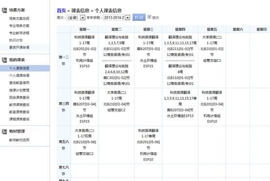 【课表信息】|【个人课表信息】查询,打印个人课表,如图2-8