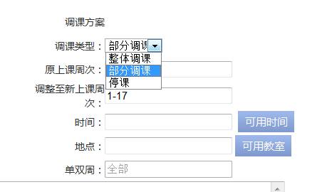 步骤二. 选择调课类型,输入调课周次如图2-10