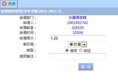 步骤一. 双击单元格弹出教室借用窗口,输入申请周次,备注等保存,保存成功后单元格内会有个“J”,在审核通过后生效如图2-16