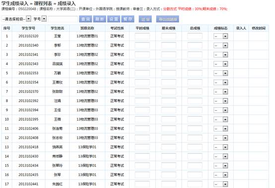 在开始成绩录入前一定要先设置成绩录入方式,在成绩录入过程中修改成绩录入方式则成绩要重新录入保存。