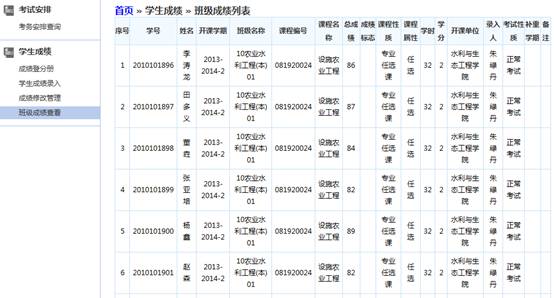 【学生成绩】|【班级成绩查看】查看班级学生成绩,如图3-14,3-15