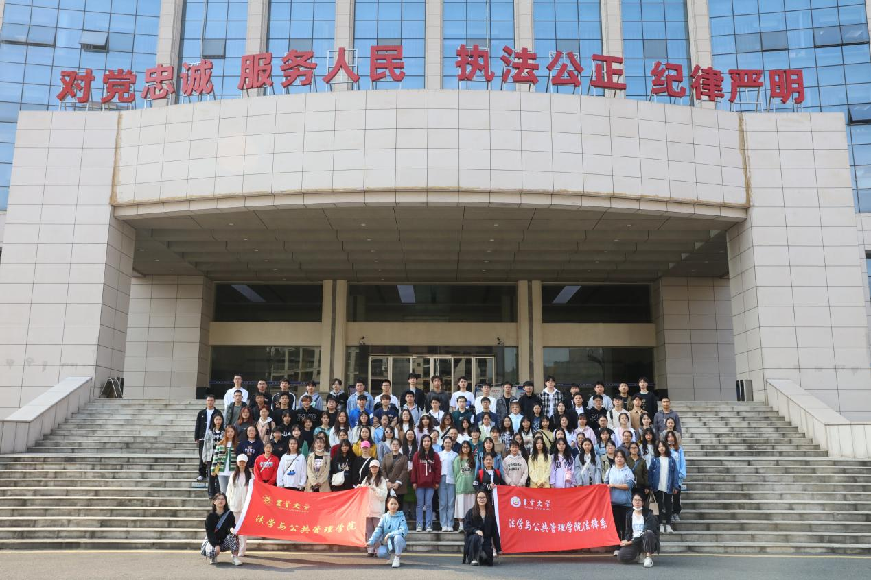 图为法学与公共管理学院21级法学专业全体师生在湘西州公安局合影留念