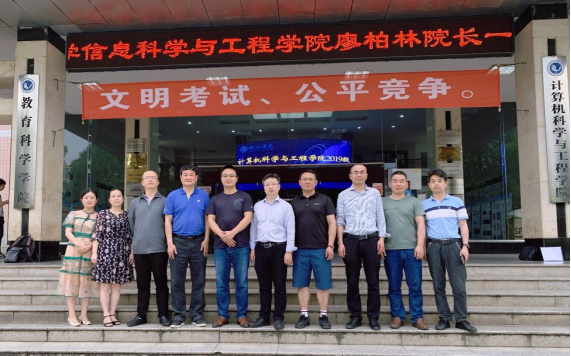 图为廖柏林一行在湘潭大学计算机学院•网络空间安全学院交流学习
