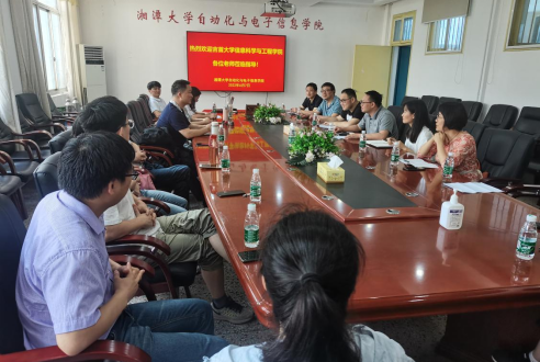 图为张仁民一行在湘潭大学自动化与电子信息科学学院交流学习